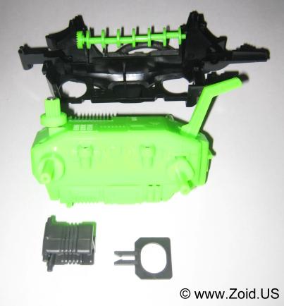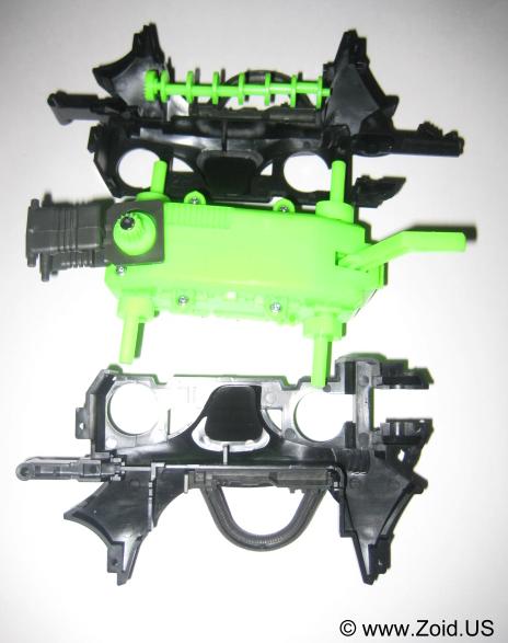 The spine axle is inserted to the right body half, the motor and ring neck base are then placed.