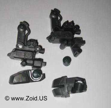 The legs are attached to the body via one cap and then a fender is placed over the top portion of each leg.