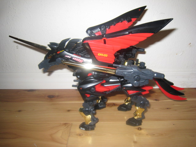 The wings are then curiously mounted on the actual top of the back, instead of to the side (which has been taken up by the laser guns). It looks better than you would tend to think.