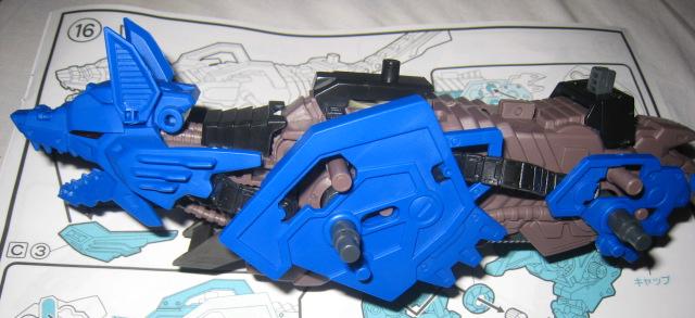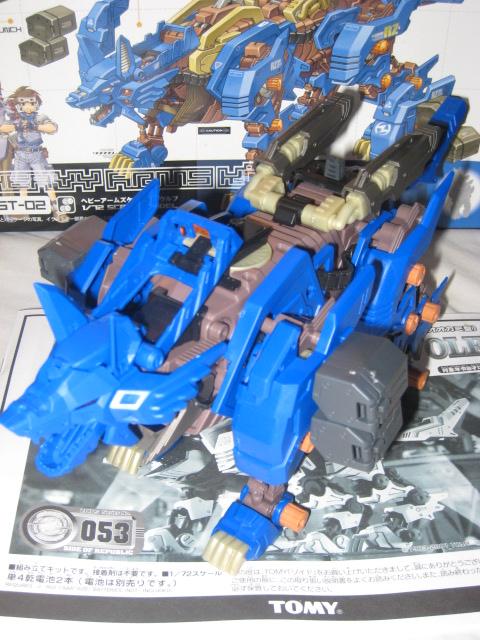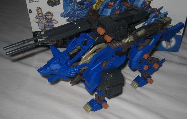 The unit is then ready for stickers. Let me take a minute to say that I enjoy trimming stickers, and every Zoid in my collection is has the stickers placed exactly as they appear on the box. It really pisses me off when the kit does not contain the stickers the box shows as is the case with the HAKW version of the kit. This unit took over two hours to trim and sticker, and I had to dig through the extra sticker box I have in order to make the unit appear exactly as it does one the box. That being said below is the finished unit.