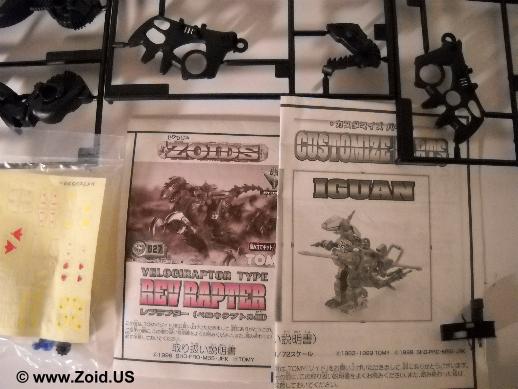 The CP-08 consists of one sprue, and was designed for both Rev Raptor and Iguan. The first step in it's construction is placing the two cap like covers over each long barrel piece forming one unit as shown below.