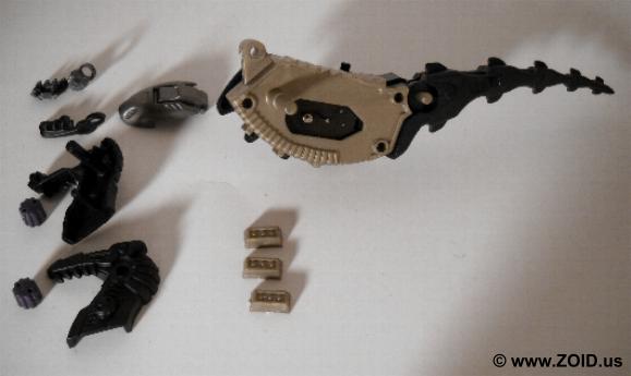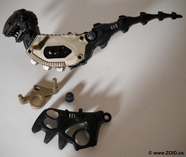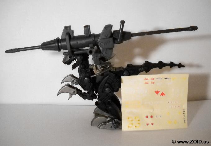 Next the wind up key is removed and the CP-08 mounting bunker is placed on the backside of the Zoid.