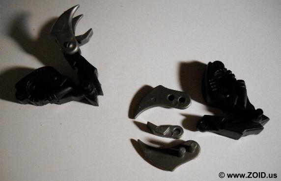 Each arm has a total of three claw pieces that are placed at then end of the arm to form the appendages.