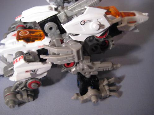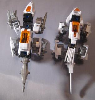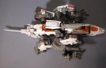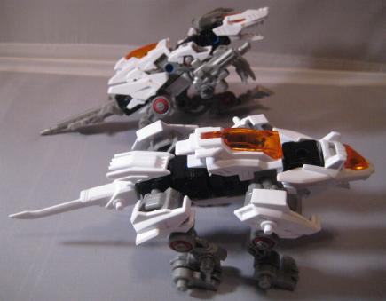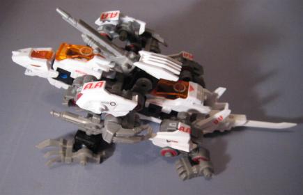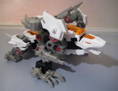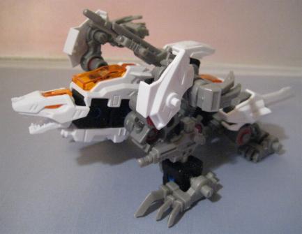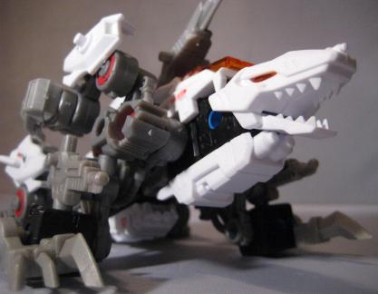 The DA Lizards, or "Double Arms" Lizards consists of Leo Blaze and Unenlagia. Both pieces are finished in bright white and are able to combine to form this new beasty. The box is an interesting study and dubs fusion as the "Changemize System". The set also comes with a VHS tape that I have personally never seen, but have been told is of little interest and just contains a few CGI images of the Blox pieces. I found the fusion one of the most difficult I have ever done. I was either having a really bad night, or these are difficult pieces to fuse correctly. The main problem encountered was in the formation of the legs as many of the leg pieces look similar, and its very easy to mix up a step and end up with the entire unit looking very, very wrong. After successful fusion the end result is nice. I particularly enjoy the wide bull dog like stance of the unit. Most of the pieces are used, and all of the stickers shown on the box are present. A good grab.