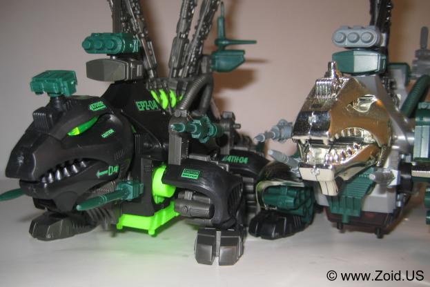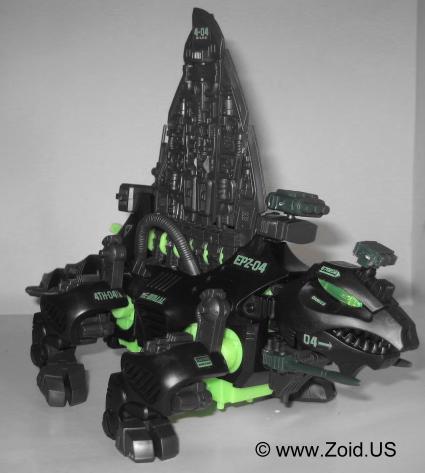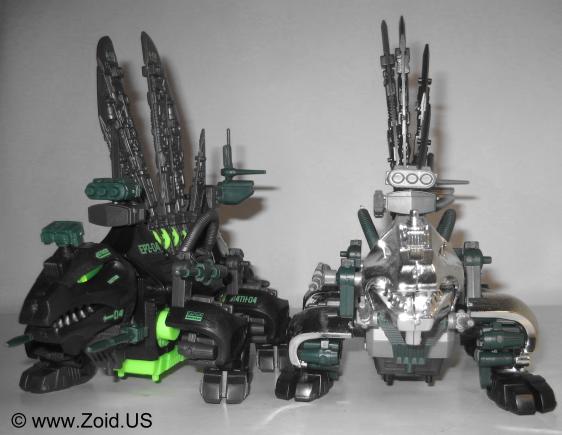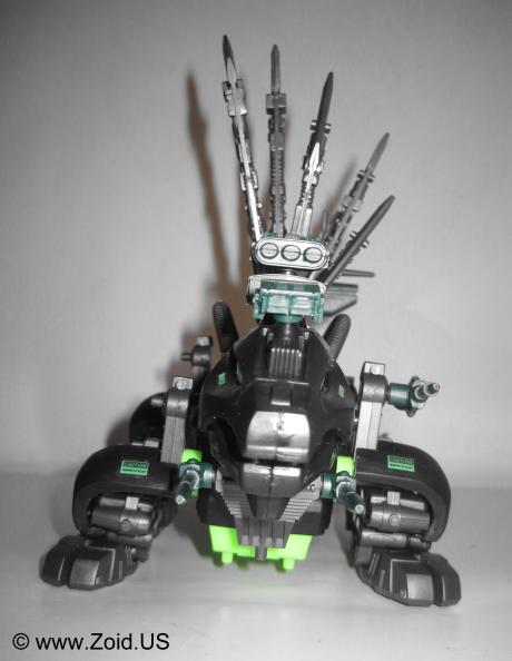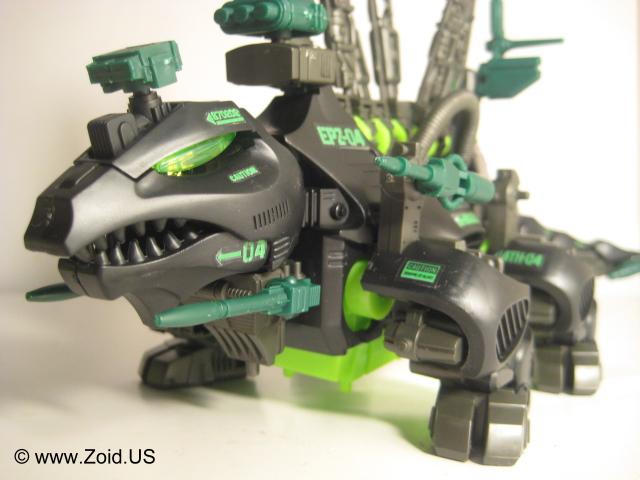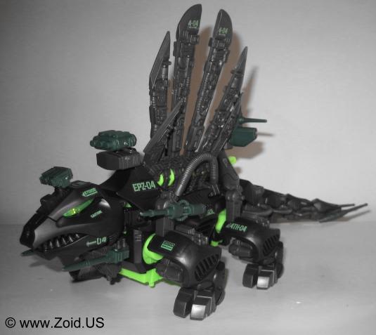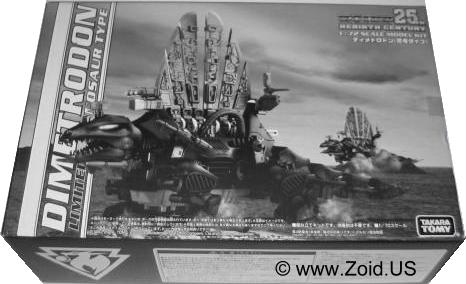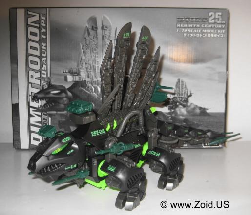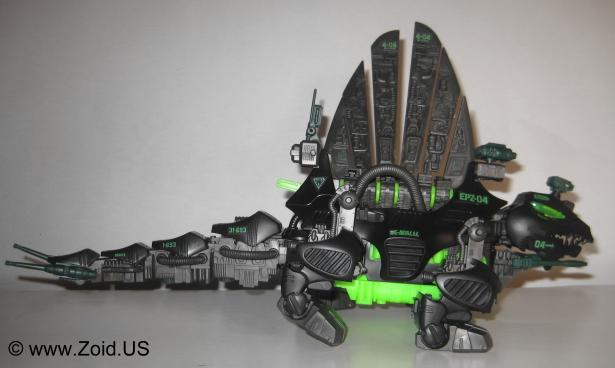 The model kit is one of the larger Zoids, and the build is of medium length. Construction of the spine is always a pleasure, and the build is pretty mundane. Dimetrodon displays well, and is an accurate depiction of the dinosaur on which it was based upon. With releases dating back to the OJR line, Dimetrodon has become a classic Zoid that makes an excellent addition to any Zoids collection. The OJR release is known as Spinefin and sports a very similar red color to the NJR release. After the OJR release, Spine Fin made it's next appearance in the OER line retaining the Spinefin name. It then went on to be seen in the Zoids 2 line where it sported a silver chrome color scheme. It's next release was to be part of the Hasbro line in which Dimetrodon would get a color make over turning the unit a semi-dark purple with black spines. This mythical Hasbro Purple Dimetrodon never saw the light of day, however an action in a similar color scheme was released and is the cause of much confusion to newer Zoiders. Dimetrodon was also given a very appropriate Dark Zoid treatment in the summer of 2009. Released in limited numbers and finished in the infamous Guylos black and green color scheme, this is my personal favorite version of the old stand by known as Dimetrodon.