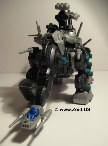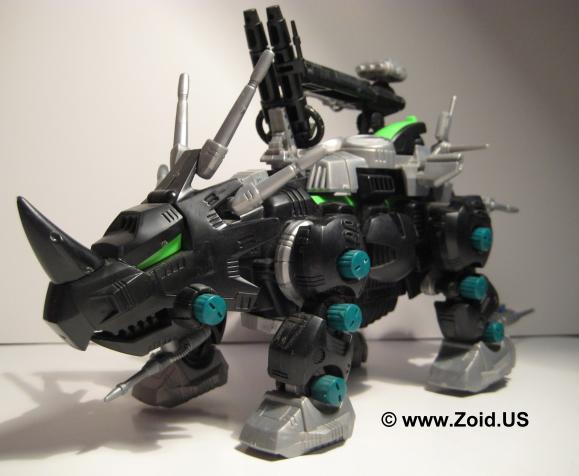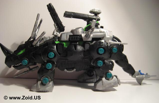 Dark is part of the "Dark Army" along with Dead Border and Demon Lizard. This was a fun kit, and looks amazing. The black and green colors really accent this Zoid. As he walks one of the guns mounted on his back spins. See the Dark Zoid entry from more information.