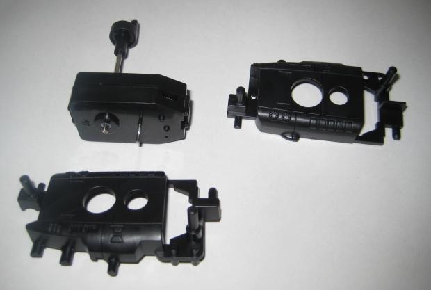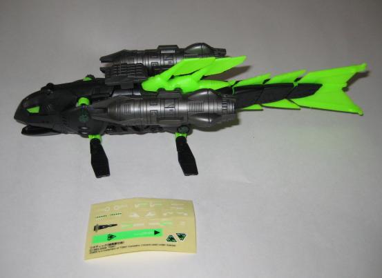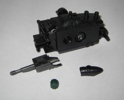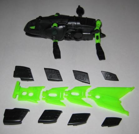 The tail is attached and held in place by a top plate. Two more side guard plates and two top fins are inserted.