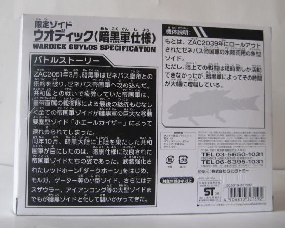 The green plastic on this piece is intense, almost glowing even when the lights are on. A fitting choice to the Dark Zoid line up, although I can think of a few better designs I would personally like to have including Death Saurer and Iron Kong. The price on this release is staying steady. This piece is very well finished and the parts fit together wickedly well. A great addition to any Dark Zoid collection, and a nice release to retro-focus on the technology of the time that made the line so unique. There's just something about using styrofoam as a flotation device that gets me every time. As for me if they keep cranking the Guylos Dark Zoids out, I'll keep buying them. There's a slim chance you may find one here in the US, yet it's worth a try.