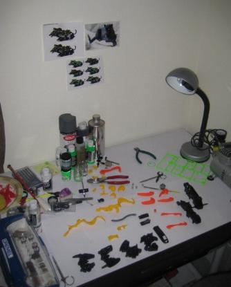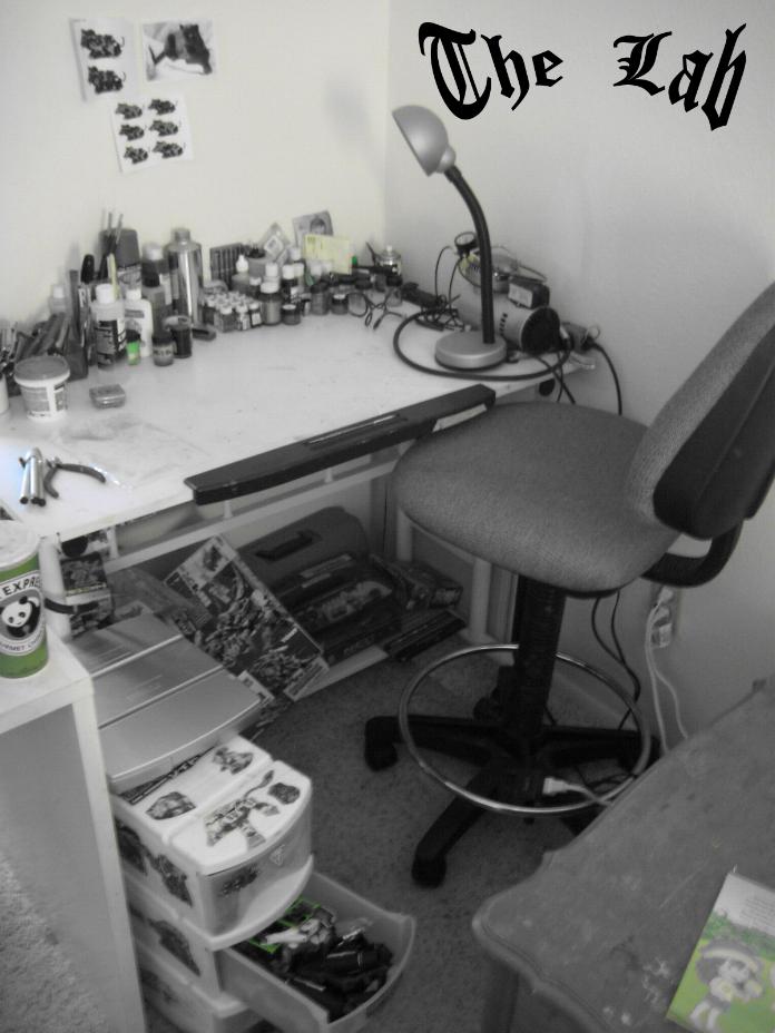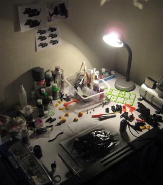I recently consolidated all of my "Zoids stuff" to fit in one corner of a room. This space was much needed as I have a semi walking 10 month old and an interested (almost) 3 year old investigating all projects. Now, affectionately know as "The Lab" I finally have a permanent, private, place to work on custom pieces. What better inauguration than a 20 year old Gul Tiger? My absorption in Dead Tiger was absolute, which is precisely the intent of any custom worth devoting time to.
