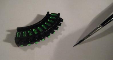 I did the majority of the piece with an airbrush, and hand painted all the fluorescent green highlight. I took a break from the main body to work on the CP.
