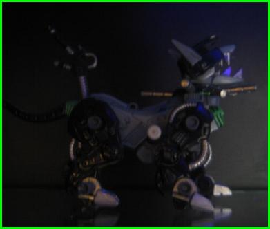 This was my first attempt at a custom Zoid, that was built years ago. There were a lot of things that I did not know back then that are reflected in this build, for example the suppressed glowing ability, and the color combinations. Looking back, I probably would not have used as much grey as I did. This build was inspired by my love of the Dark Zoids (even back then), and the fact that I have always owned American Pit Bull Terriers as pets. The build took a few days, and you can view some of the process of creating the piece here.