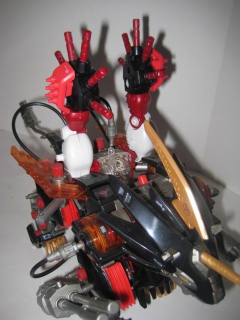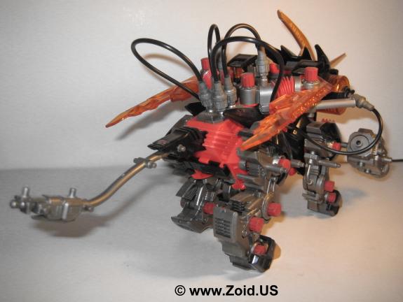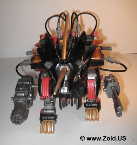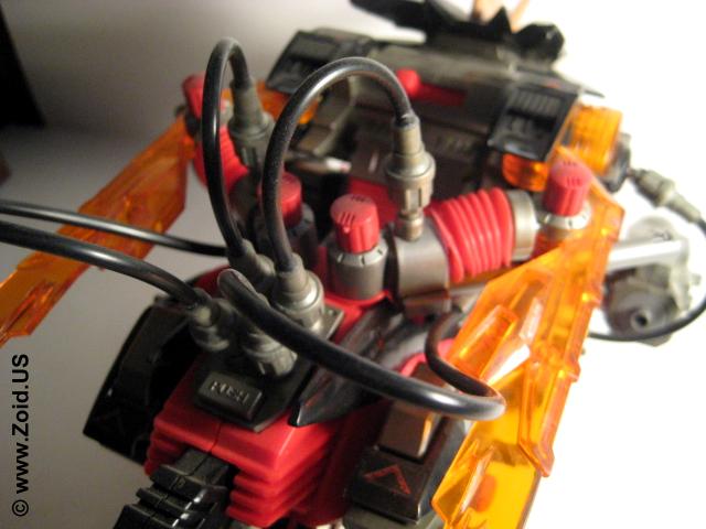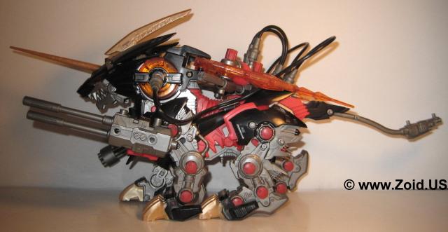The Energy Liger build is also unique. Although it is based on a normal Liger frame, the unit makes use of battery powered air pump representing the Energy Charger. The Energy Charger consists of two large bellows that supply air " tachyon particles" to the Liger's movement or weapons system. The mode can be selected and as a result of selecting the movement mode the air travels through the tubes and into the wings allowing the wings to fold and unfold as the unit walks forward. The real treat is when the weapons system is selected. The air is directed to the weapons successfully setting the charger gattling spinning and animating the dual charger cannon which pulsates back and forth. Being one of few antagonist Liger's the Energy Liger is an excellent piece to add to your collection. The animation on this piece is truly a sight to behold, and puts most "modern" toys to shame with it's air pump technology. The armor holds on surprisingly well, and my piece does not shed at all. } The colors compliment each other very well, and it is worthy to note the distinct ancient Zoidian runes found on the horn which are later seen in the Genesis line on pieces like Gil Dragon. Perhaps foreshadowing proof that the Energy Liger was indeed the legendary "Alpha Zoid"? Although becoming a bit on the rare side you can still land this bad ass for around $40.00-$50.00 US, and it's worth every last penny.