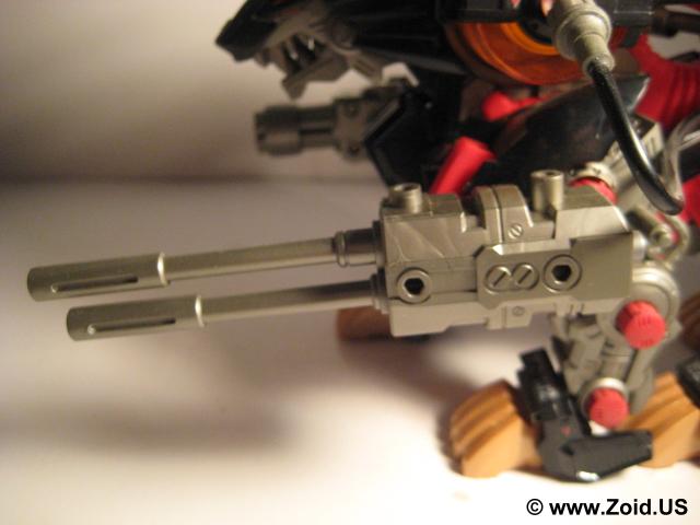 The Energy Liger also features a wide array of weapons. The first main piece of weaponry is a two barrel charger beam cannon, this is partnered with an unmistakable eight barrel charger gatling gun. Both of these weapons are powered by the energy charger, and are capable of ungodly amounts of damage. A small pair of wings also adorn Energy Liger, also powered by the energy charger, these wings make the Zoid capable of limited flight. The wings can also be used offensively as a pair of laser blades capable of cutting through an enemy as if it were a tin can. In addition to these three unique weapons the Energy Liger also has an AZ X Blade, a Gungir Horn that it can use as a lance, and each of the claws xan also serve as weapons.
