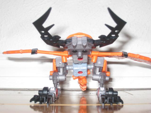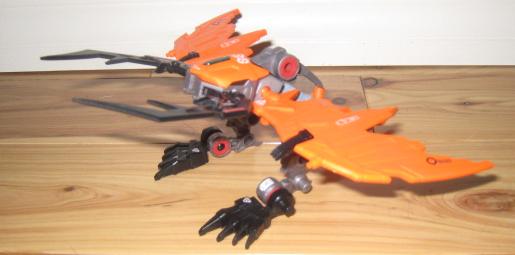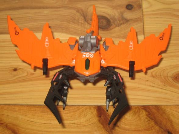 This is the Fly Scissors Blox Zoid. I am a huge fan of this guy. He does differ from the box in that the actual unit is orange and black with the omission of the yellow. The colors gives this Zoid a distinct Halloween feel. It is surprisingly large for a Blox. The pinchers open and close when one is pulled via gear like interlocking pieces. A fun build, fun to sticker, this is a must add to your collection.