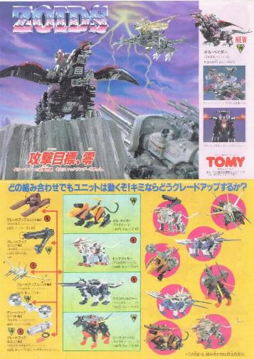Below: An interesting insert with Gil Vader and Salamander F2 that was including with Gul Tiger. I personally did not have this OJR catalog. It also show a different line up of the Grade Up Zoids.
