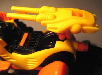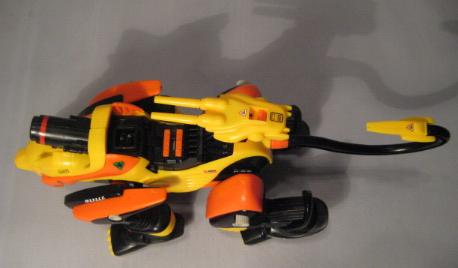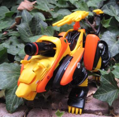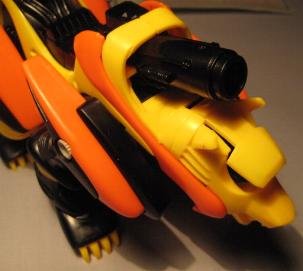 Yet another intriguing fact about the Gul Tiger is the primary weapon it uses. The Gul Tiger carries the infamous SCCPC or Super Compact Charged Particle Cannon, and IS able to fire the cannon while in motion. It's truly amazing (to me) that a Zoid much smaller than its fellow CPC carrying brethren (Death Saurer, Geno Breaker, Geno Saurer, ect.) can effectively use the unit much less use it while "on the run". Gul Tigers other weapons consist of Beam Gun and Paralyzer.
