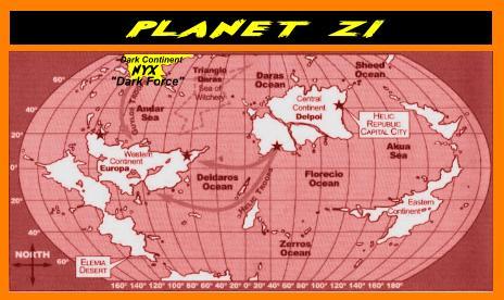 Gul Tiger hails from Nyx, the Dark Continent. Nyx was home to the Guylos Empire. It was hit by meteor that submerged it under water and brought an end to the Gul Tiger as well as many other great OJR Zoids. After Nyx was inhabitable the Guylos troops moved to Europa (The Western Continent). Below is a map of Planet Zi with Nyx (the origin of the Gul Tiger) highlighted.