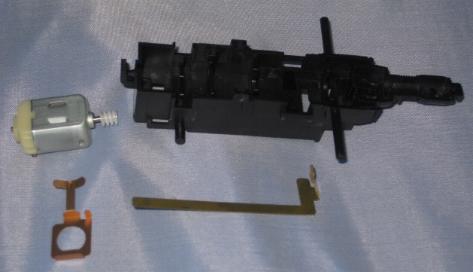 Two of the metal contacts as well as the motor are placed inside the body compartment: