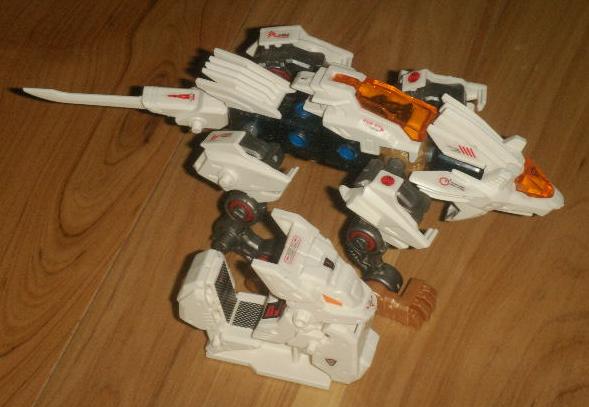 This is the Infinity Leo, a limited Zoid that was packaged with the Japanese Zoids Infinity Fuzors video game for the PS2. A very interesting critter this zoid has two forms. The head can be taken off and fitted onto an arcade machine. An interesting concept, this Zoid is nothing special.