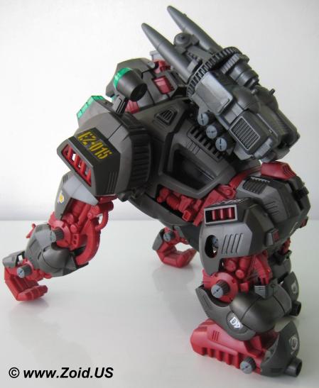 Created by the Empire. Iron Kong is a Gorilla type Zoid. Different versions of this Zoid were used by both Zenebas and Guylos Empires. Iron Kong was specifically designed to counter the Republic's Gojulas. Iron Kong is a large and heavily armored unit. Although twice as fast as the Gojulas, Iron Kong is still considered to be sluggish. Iron Kong is very nimble for it's size, and it's prehensile thumbs allow the unit to climb, swing, and grasp. It is also very capable of picking up heavy objects and flinging them at anything (or any Zoid) in the distance. Iron Kong is able to make a fist and effectively use it to punch it's opponents in close quarter combat. Iron Kong was introduced en masse, and the Empire began it's strike with the deployment of 150 units which would eventually penetrate deep into Republic territory.