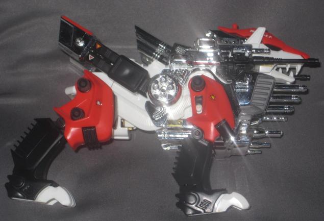 In the continuing saga to locate what I believe to be the greatest line of Zoids existing, King Baron was a welcomed addition. When switched on the unit stomps forward with its jaws opening and closing. Although it's not too large the awesome amount of chrome more than makes him stand out amongst his fellow Zoids. If you catch him, you will definitely appreciate being in the presence of his royalty.