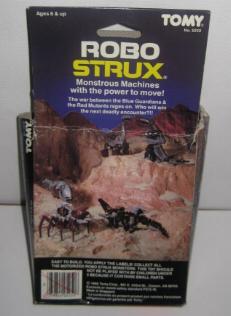 This is an OER Slither Zoid repackaged in a Robostrux box (Thanks to Docker for clearing this up!) . This is a rarely seen box. Produced in 1986 in Singapore the front features the slogan: "Monstrous Machines with the power to move!" and on the reverse reads: "The war between the Blue Guardians & Red Mutants rages on. Who will win the next deadly encounter?!!" The enclosed label sheet has a foil like quality, and features Empire Logo's as well as two separate "eye decals".