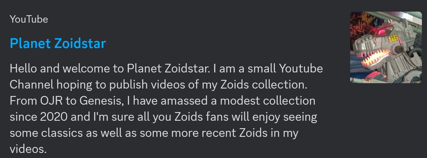 our beloved Zoids. Stop by his channel and show some love with hitting
