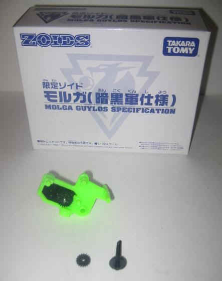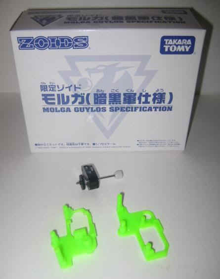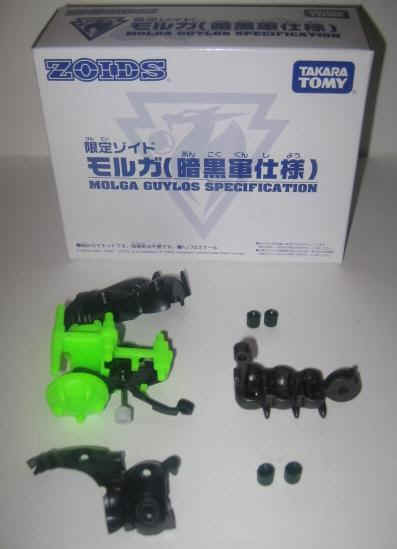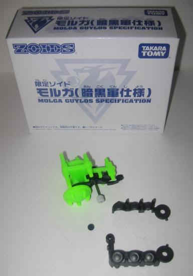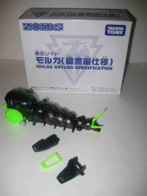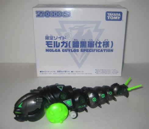 Molga was also released in a clear "holotech" or "crystal" version. This version was available with Z-points in Japan and was also released as a packaged special in Australia. Below are the Australia and Japanese release boxes. The pilot figure that accompanied both version was finished in blue.