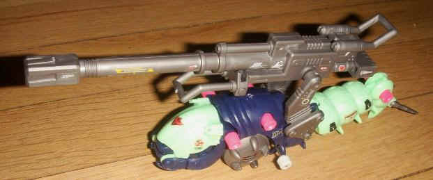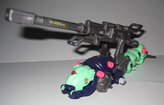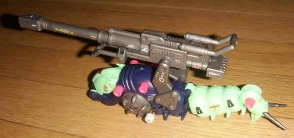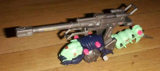 Molga got yet another (color) make over for its next incarnation as the Genesis: "Molga Cannonry". Released as part of Zoids" Genesis in 2005, this version of Molga included the CP-07 and fit the standard Genesis theme of being more military colored with it's drab colors.