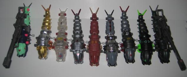 Molga was first released in 1983, has seen many versions. The OJR release titled "Molga" was first followed by the OER and Robostrux version dubbed "Kreep". This classic version of Molga was brick red and tan. It featured a gold colored pilot.