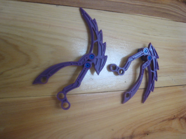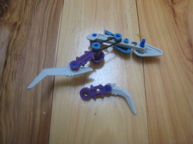 The back legs are then created. This is where we see the use of the power band employed. A very interesting concept that uses tension to create action. Note the various pegs that are placed through the main leg piece that is riddled with different sized holes.