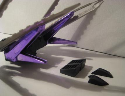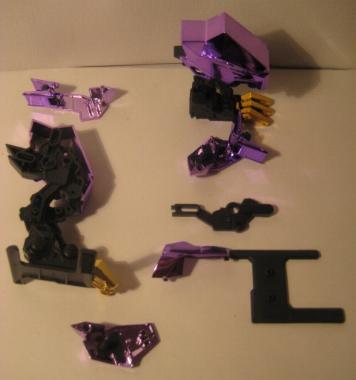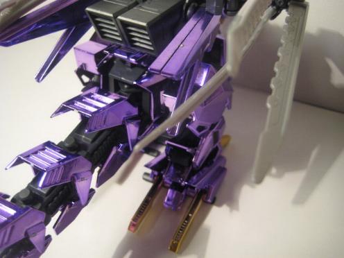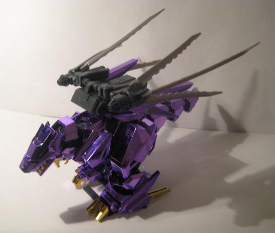 The Buster Claws are then fit into the back, and the unit is complete. I do not sticker my chrome Zoids, I don't think it looks to good and I also fear the acidic nature of the adhesive slowing eating away at the chrome finish. This piece is just magnificent, a true sight to behold, it looks even better in person. The Chrome Purple lends the feel of "royalty" to the piece, and the gold accents are just right and not overdone.