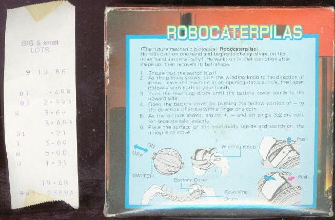 The only other review I have seen on this unit is here. The one I have was made in Taiwan, so it may be a bootleg, as I do not see Robogorgon, nor Gakken anywhere on the box. It reminds me of Molga / Kreep, and makes an interesting addition to any collection. If you ever come across one, don't be afraid to pick it up!