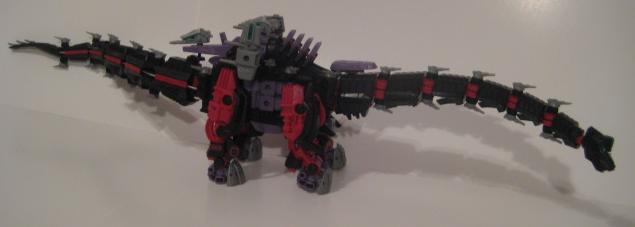 Although I dont think much of the layout of the Hasbro sticker scheme, the black and red Seismosaurus is a really nice piece. It's really serpentine in nature, and the design flows well and is good at being what it is. Coming in at approx. 30" in length this bad boy is going to need some room to display properly. A worthy addition to any collection, don't miss it!