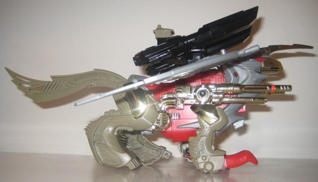 Phrases like these always teleport me back into childhood, and are a big part of why I enjoy the Tehcno-Zoids line so much. Another part of my partialness towards this line is the chrome, of which there is no shortage on this unit. The cannons, beak, and horn are all finished in flashy gold chrome. Aside from the aesthetic appeal the Storm Tiger is also significant in that it's the only unit to ever had been re-released out-side of Japan with a standard Grade Up Unit included. The Storm Tiger sports the GU-01 or Hyper Beam Gun. This unit was originally intended for Hound Soldier, and features a pair of large Beam Cannons. Another unique aspect is the motor unit that has to be built, old school style and is not a complete unit with switch that comes with the Hasbro release, but instead hails back to it's Grade Up roots. More on this later.
