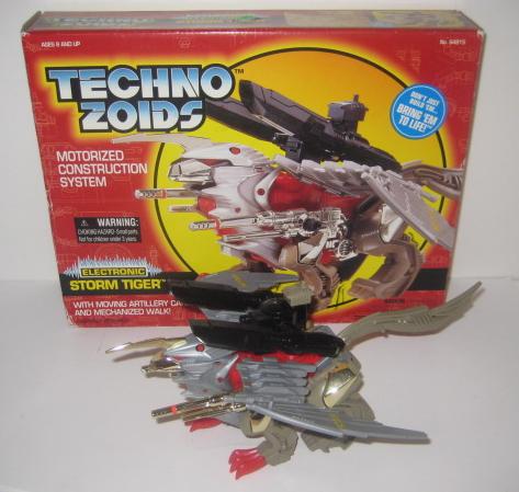 Produced by Kenner in 1994, this is the second incarnation of the Zoid known as Battle Cougar titled "Storm Tiger". Battle Cougar was originally an OJR release and part of the Grade Up series. Battle Cougar is a Griffin Type Zoid that is capable of both land and air combat. It has an impressive variety of weapons which can only be enhanced by the ability to mount additional weapons via the grade up port on the unit's back.