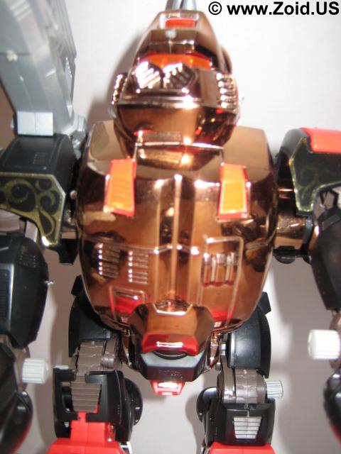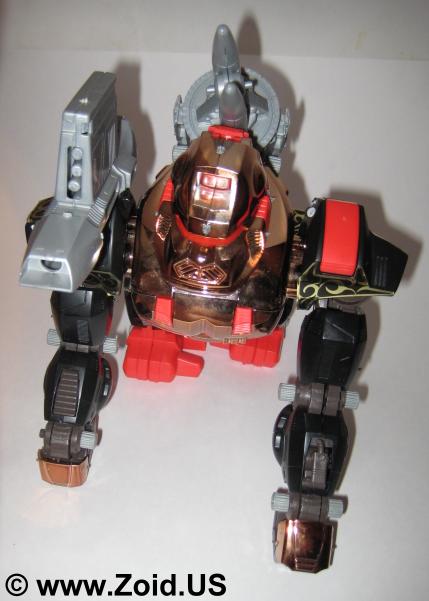 Iron Kong is nothing short of delightful to build. Again the engineering on this piece is amazing and in my mind still competes with the toy releases of today. The build is relatively short, with the majority of the pieces being larger. When turned on, Iron Kong moves forward in true ape like fashion with it's head turning, missile pack rotating, and eyes blinking. Price range varies depending upon release, and an example of a complete Iron Kong MK II Ltd can fetch upwards of 4,000 US. Iron Kong is a fun build and one that's not to be missed by both the average and the avid fan. Below is the Zoids 2 Version. The color of the chrome on this unit is very copper. As with all Zoids 2 models the tribal and celtic stickers make an excellent accent, and this piece is probably one of my favorite versions of the Iron Kong.