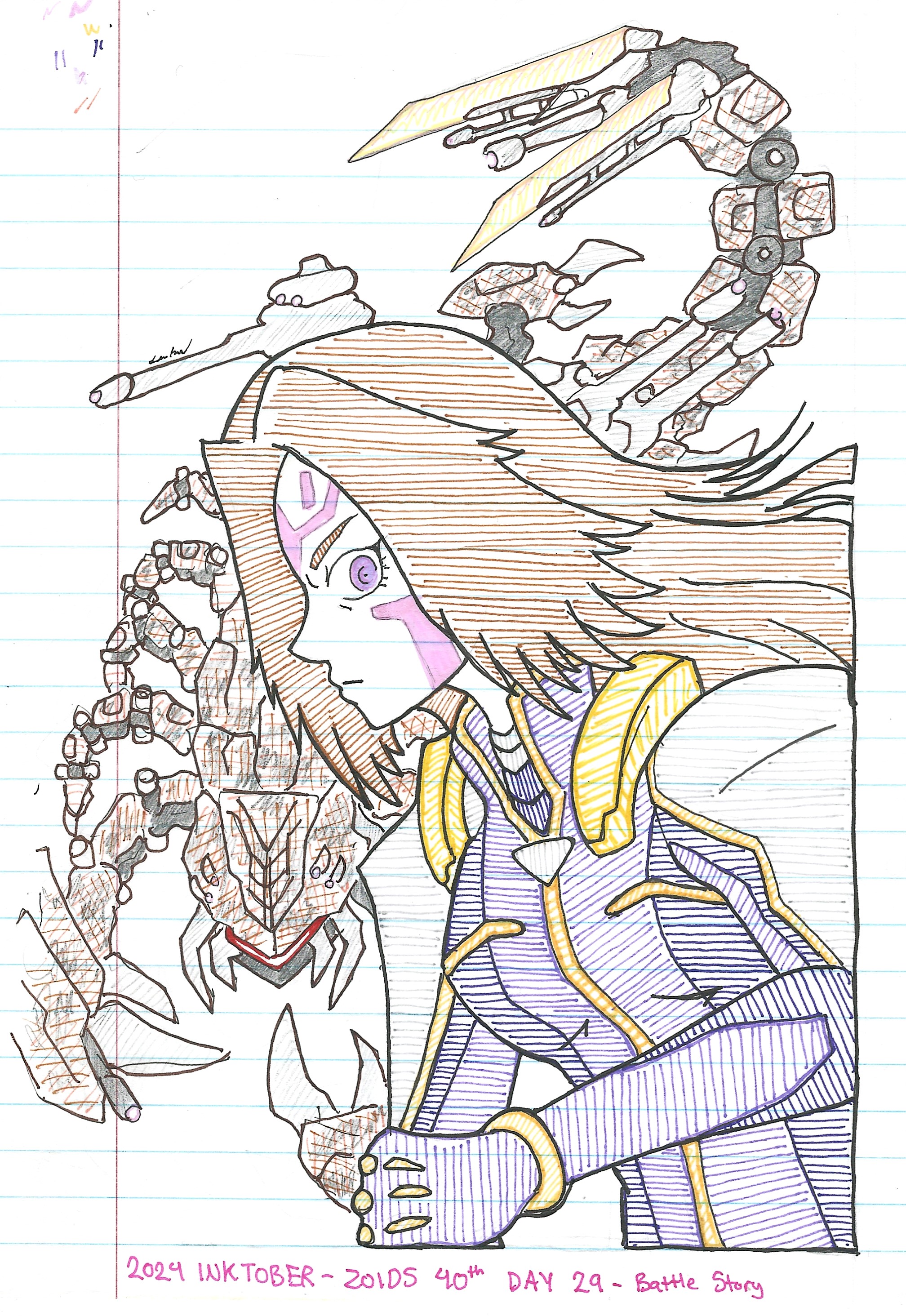Her Zoid of choice is the Death Stinger KFD, a heavily modified version of the original terror on 8 legs.