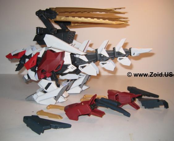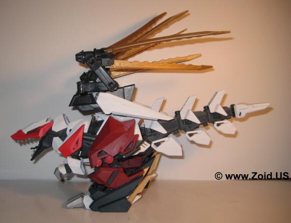 Berserk Fury saw it's third variation later on when a group of scientists from both the ZOITEC corporation and Guylos, as well as the defeated and retreating Republic survivors combined to rebuild the Republic. Direct observation of how accurate, agile, and destructive the Berserk Fury was this group sought out to improve upon it's already deadly design. Known as the Gairyuki or Gai Ryuki, this unit was derived from the base of the Berserk Fury along with the Zoitec designed Blox armor, and the Republic's newly developed Ray Absorbing Charged Particle Cannon.