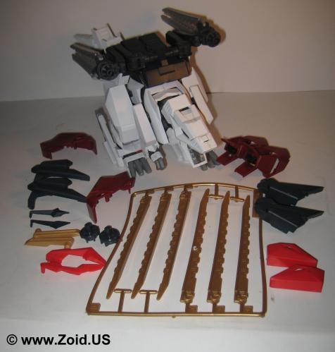 The Berserk Fury is one of the more complex Zoids builds. Using two triple A batteries for it's motion, Berserk Fury actually has a switch for the operator to select between two distinct modes of operation. The first mode makes the Zoid walk forward with its arms swinging, and tail sweeping. The second mode is just awesome. In this mode the Berserk Fury stands totally still and opens the intake vents on the tail while deploying the Charged Particle Cannon. Check the build file located above to get a general idea of building this piece. The eyes are exceptionally hard to place and can break if not handled properly. The tail vents also must be perfectly aligned and trimmed flawlessly to operate correctly. On the Sturm Tyrann it is possible for the X-breakers to bend and eventually snap as the plastic is not heavy enough to support the weight of the claws. This problem can be solved by carefully positioning the Zoid to take the weight off of the claw units when displaying it for extended periods of time. I consider the build to be extremely fun, and I am currently up to about 6 pieces (including one custom the Black Tyrann). A variety of pieces and variable sizes of those pieces make this build very time consuming, yet totally satisfying when complete. The actual Zoid is a sizeable piece when finished and the Buster Claws make for almost endless display possibilities. A highly desirable kit, I recommend picking up at least one of these history rich beauties.