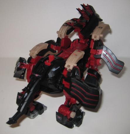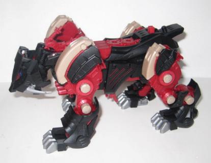 Taking a look at the additional equipment on Brastle Tiger, one will notice the "heat sinks" located in the cuffs and on the tail. These sinks are used to disperse the heat gathered, as it would be nearly impossible and impractical to discharge all of the heat converted energy in one shot. Brastle is an average armored Zoid, with an immunity to heat based attacks. Released as the last model of the NJR line in 2004, it comes with a short DVD.
