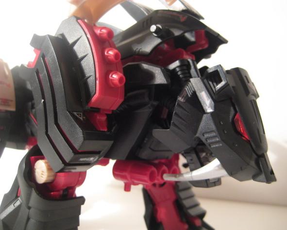 Bratle Tiger is packed with features. The back plate scale like cannons are able to be positioned via the rods, the wing gun fins are able to move up and down, the heat shields open, and the should cannons are able to open. Below is a closer look at the ejection seat.
