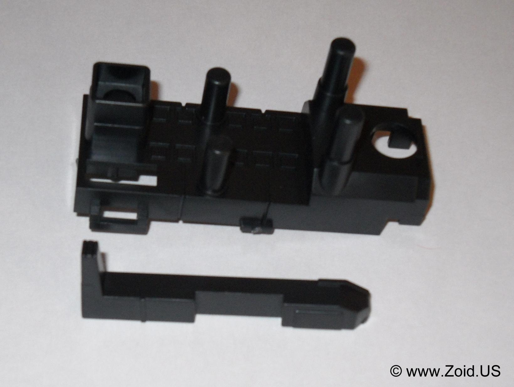 The build begins with placing the "L" shaped bar into the grade up gear box upper plate