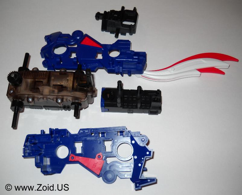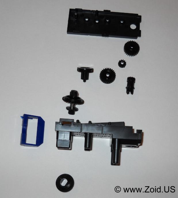 The built gear box is sandwiched between two body halves along with the motor, and the top mount is positioned
