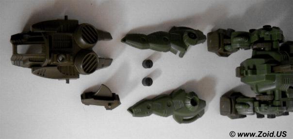 Next the left foreleg is constructed. The front leg consists of four pieces and is secured via 3 caps.