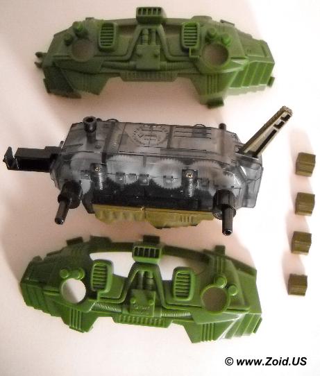 The build begins with sandwiching the motor between the two large body halves and secured via 2 clips on the top and 2 clips on the bottom.