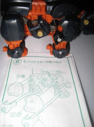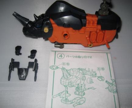 In the next step we fit the under mounted chest gun that doubles as a front clip, the back radar satellite, and the front cover.