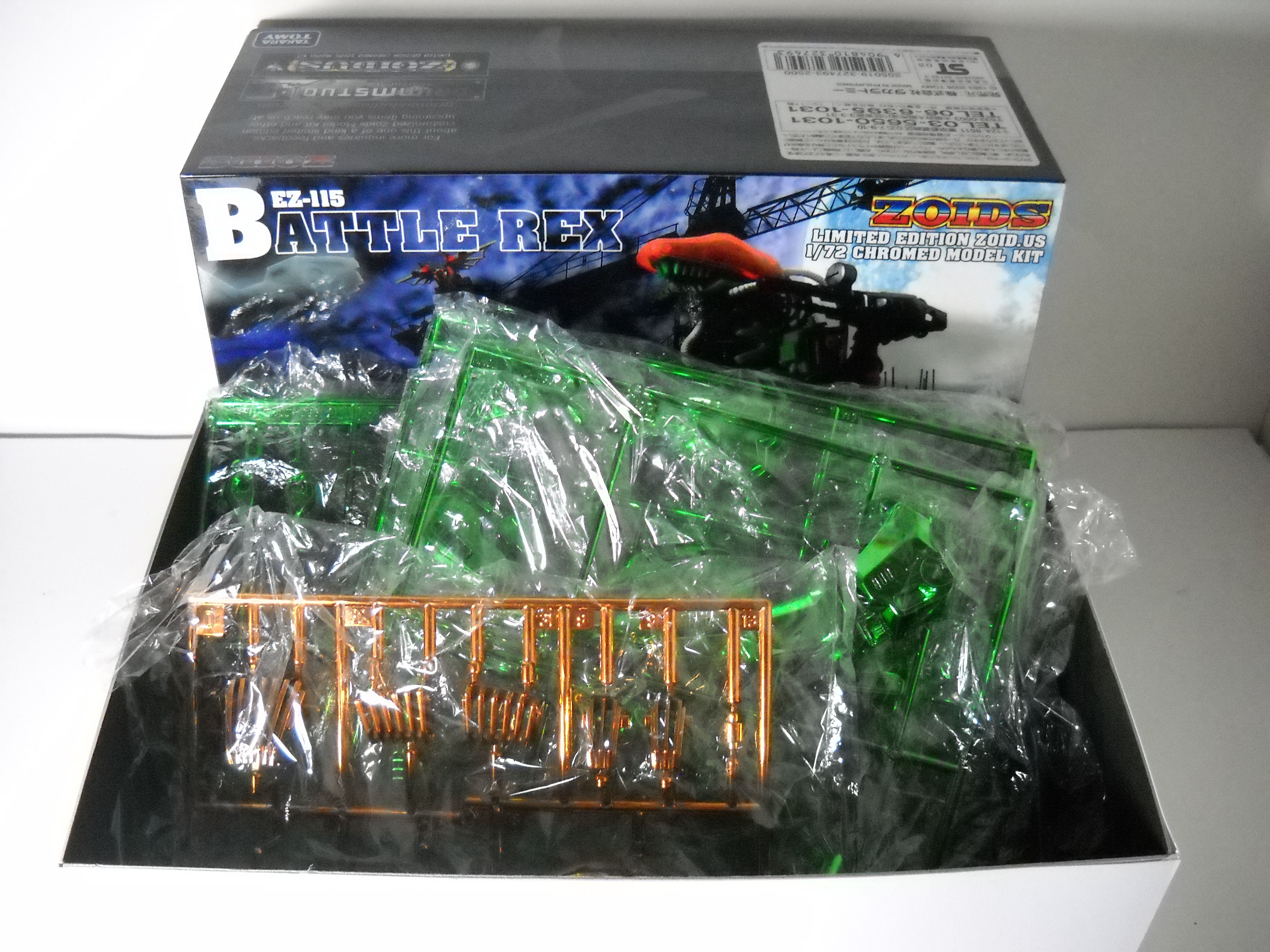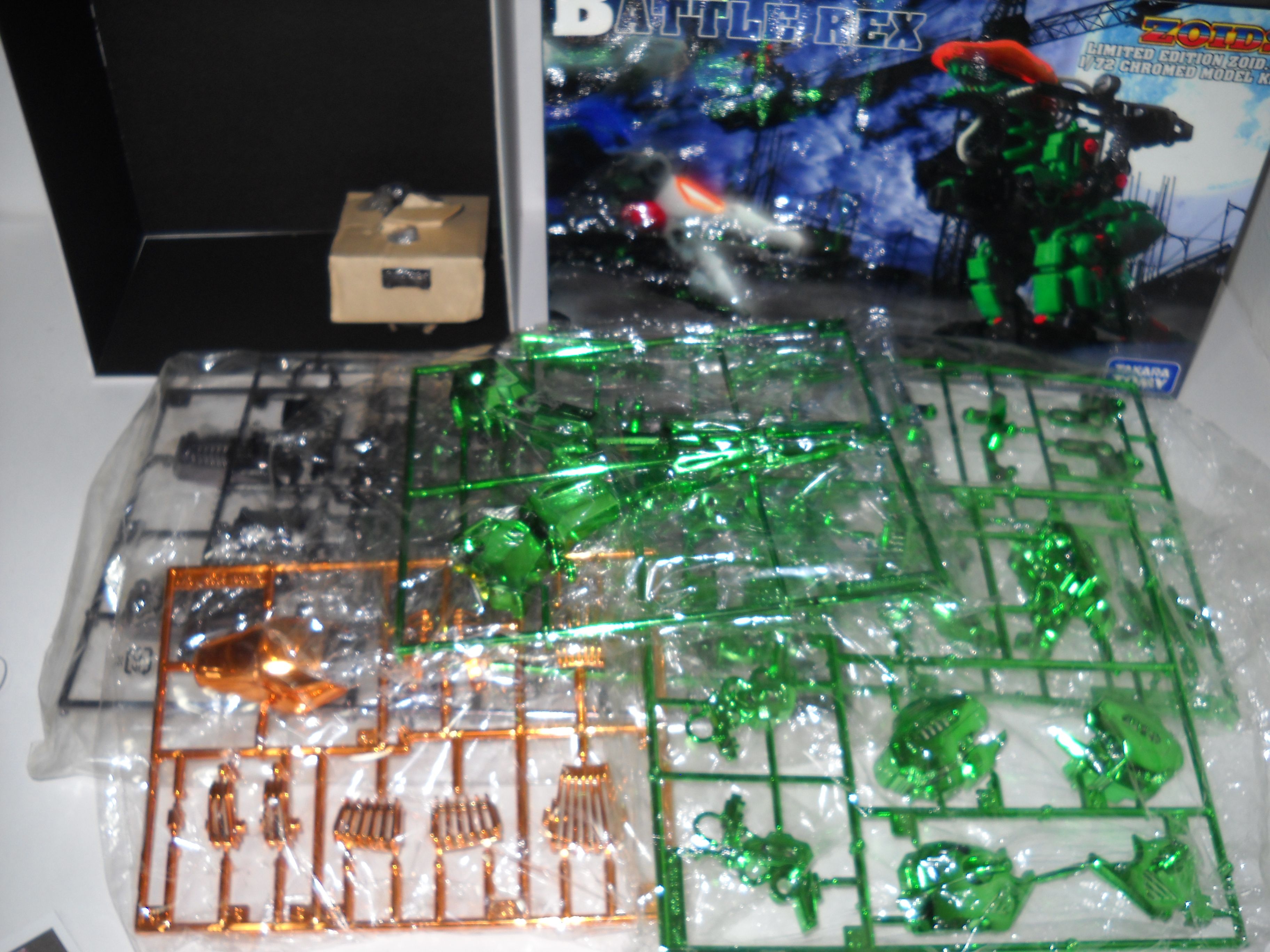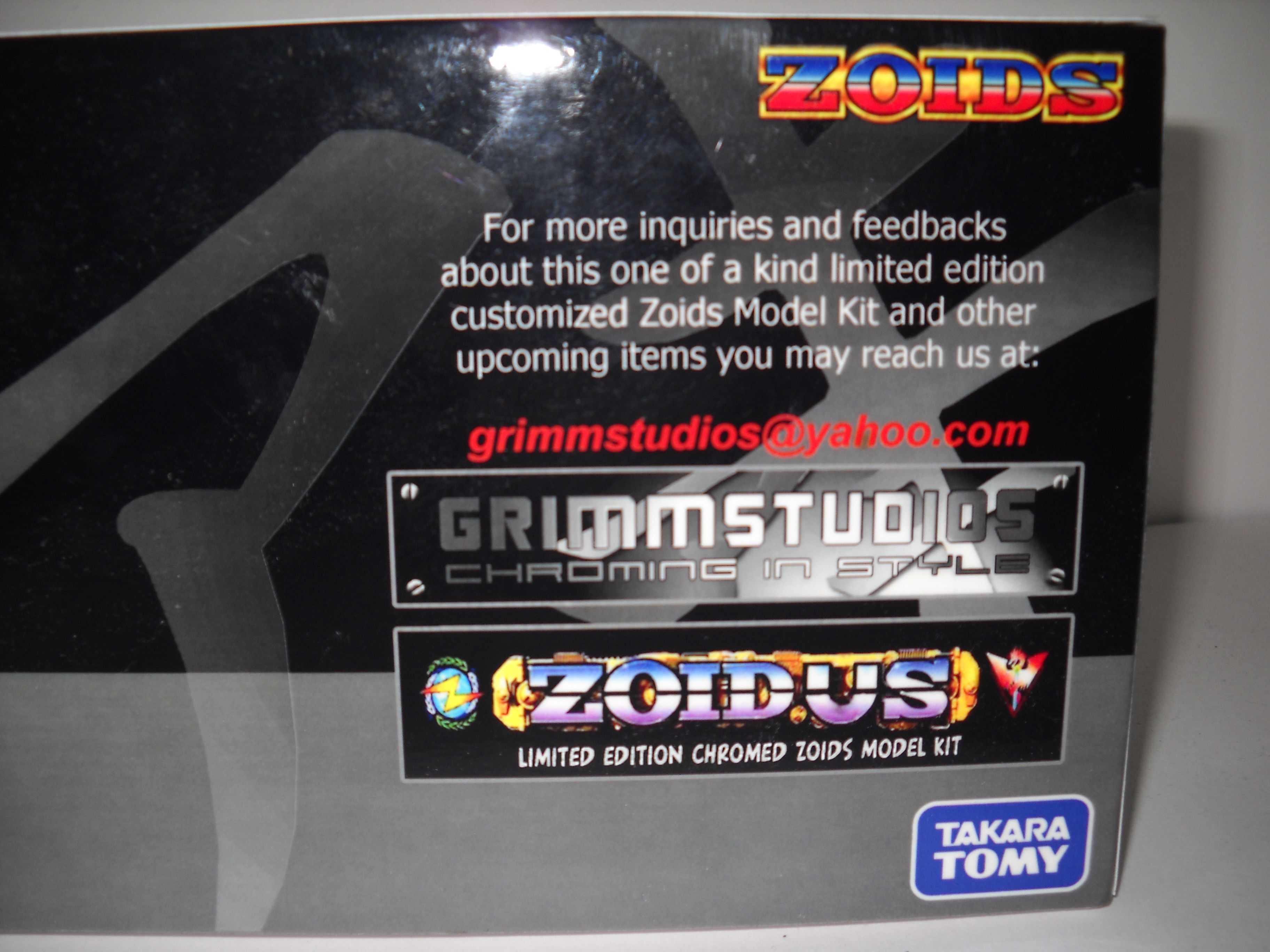 The box also has the zoid.us logo, the grimm studioes logo, and all the official Tomy lingo. The box is lined with hard black paper, and is just a top notch creation and project in and of itself. It really has to be seen to be appreciated. The Battle Rex went together flawlessly with the chrome calculation more precise than I had ever experienced.