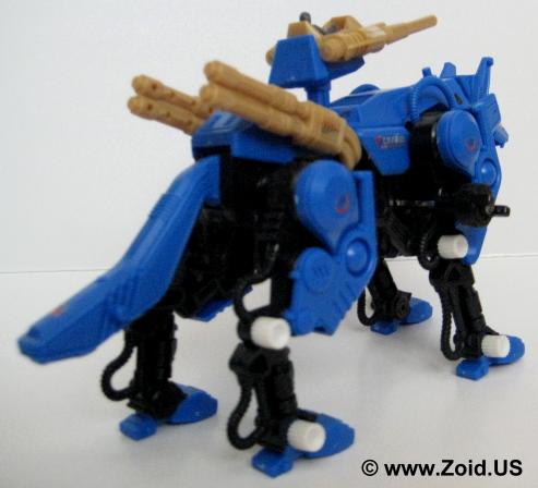 After the meteor strike in ZAC 2056, the Republic re-introduced the Command Wolf design. This time all under developments were considered and the resulting product was the ninth Zoid to be produced in the Republic's new standard line up. New weapons systems were specifically developed for use by the Command Wolf, and the Command Wolf would finally be able to become properly utilized. In fact, this version worked so well that we would not see another Command Wolf for approximately 44 years at which time the Republic introduced "Command Wolf AC". Not only did Command Wolf AC get a CP-04 (Attack Cannon/Unit) standard, but it's combat, armor, and electronic systems were altered making it vastly surpass any other version. Consisting of a pair of 250mm Beam Cannons, the CP-04 had previously been used to boost fire power of smaller Zoids with great success. Along with the Beam Cannons, the CP-04 boasts a stabilizer unit that was implemented to help reduce the recoil and balance the massive (20 ton) weight of the CP. To make up for the additional weight of the CP, twin boosters were installed on the hind legs of Command Wolf AC. These boosters would compensate for the weight of the CP, and allow the Command Wolf AC to reach it's former top speed. At first, Command Wolf AC would be utilized only by an elite division of the Republic (The Flash Unit), but eventually these new units would become standard in many Republic troops.