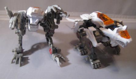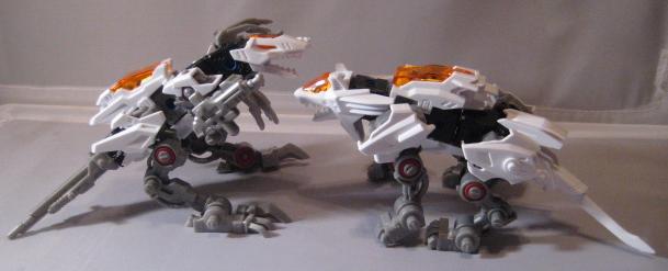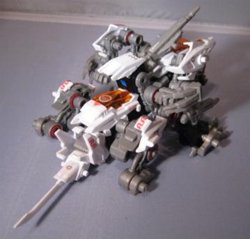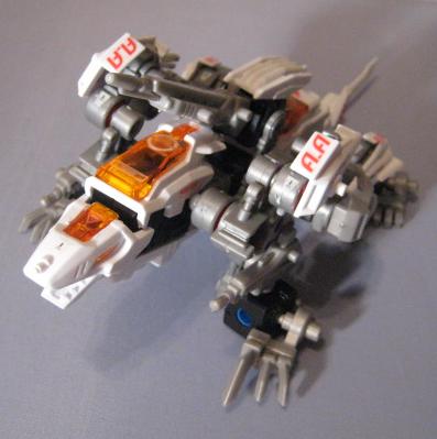 The DA Lizards, or "Double Arms" Lizards consists of Leo Blaze and Unenlagia. Both pieces are finished in bright white and are able to combine to form this new beasty. The box is an interesting study and dubs fusion as the "Changemize System". The set also comes with a VHS tape that I have personally never seen, but have been told is of little interest and just contains a few CGI images of the Blox pieces. I found the fusion one of the most difficult I have ever done. I was either having a really bad night, or these are difficult pieces to fuse correctly. The main problem encountered was in the formation of the legs as many of the leg pieces look similar, and its very easy to mix up a step and end up with the entire unit looking very, very wrong. After successful fusion the end result is nice. I particularly enjoy the wide bull dog like stance of the unit. Most of the pieces are used, and all of the stickers shown on the box are present. A good grab.
